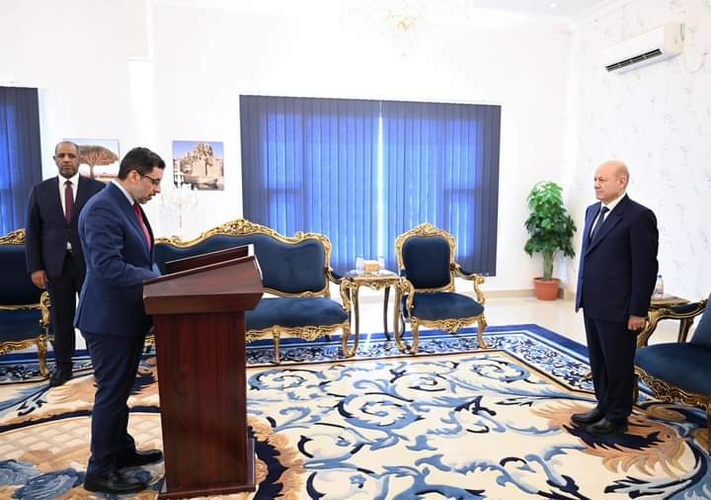 رئيس الوزراء يؤدي اليمين الدستورية امام رئيس مجلس القيادة الرئاسي في العاصمة المؤقتة عدن