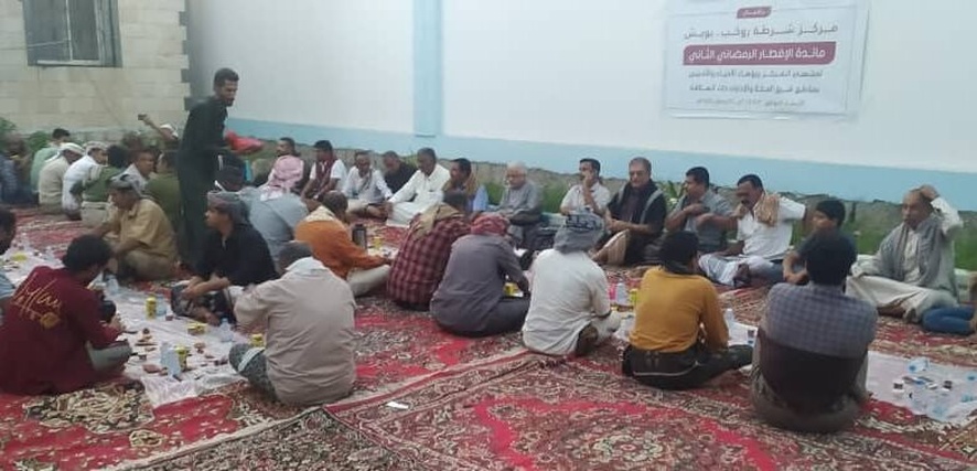 أقيم حفل الإفطار الرمضاني الثاني لمنتسبي مركز شرطة وأمن روكب-بويش ورؤساء الأحياء والأمنيين بمناطق شرق المكلا والإدارات ذات العلاقة والذي نظمته قيادة مركز شرطة وأمن روكب-بويش اليوم الأربعاء ٢٤ رمضان الموافق ٢٠٢٤/٤/٣م بحضور ورعايه كريمة من نائب مدير الأمن والشرطة بحضرموت الساحل،مدير أمن مديرية مدينة المكلا،العقيد/صلاح المشجري.