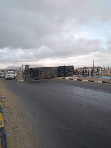 انقلاب حافلة ركاب في المكلا بسبب الأمطار يُخلف 12 مصابًا