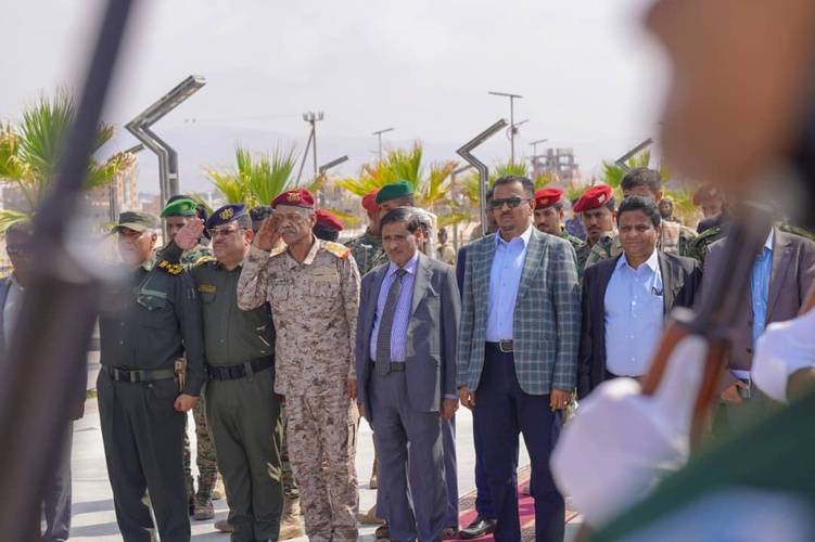 البحسني يضع إكليلًا من الورد على ضريح الجندي المجهول بالنصب التذكاري وساحة شهداء حضرموت