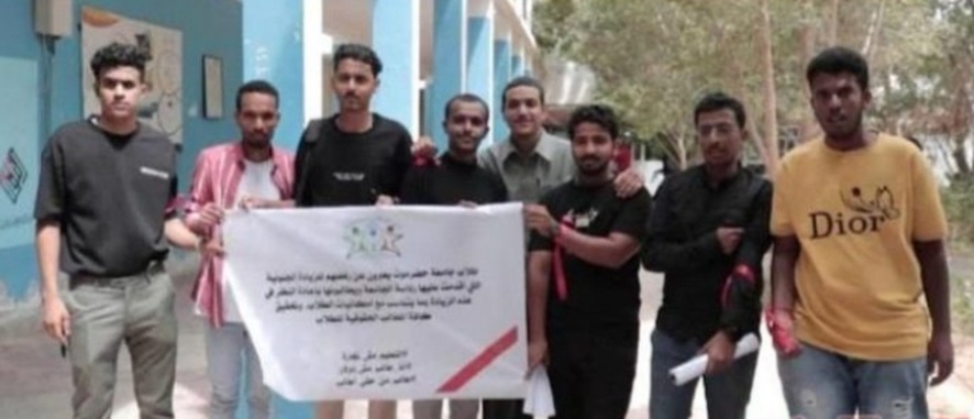 تعبيراً عن رفضهم الإرتفاع الجنوني للرسوم.. طلاب جامعة حضرموت يرفعون الشارات الحمراء تمهيداً لإضراب محتمل