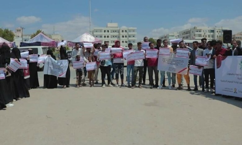 طلاب جامعة حضرموت ينظمون وقفة احتجاجية أمام حرم الجامعة