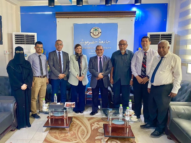 رئيس جامعة حضرموت يستقبل المستشارة البحرينية هدى الخواجه ووفد مؤسسة حاضنة بناء لريادة الأعمال