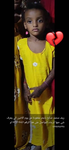 وفي يوم الإثنين خلال الأسبوع الماضي عاشت مدينة المكلا رعب أثر الأختفاء الغامض للطفلة ريم بابحر في حي باعبود وذلك بعد خروجها في وقت الظهيرة حيث لاتزال أسرتها حتى هذه اللحظة تجهل مصيرها دون أن تجد اي رد من قبل إدارة الأمن في العثور عليها .