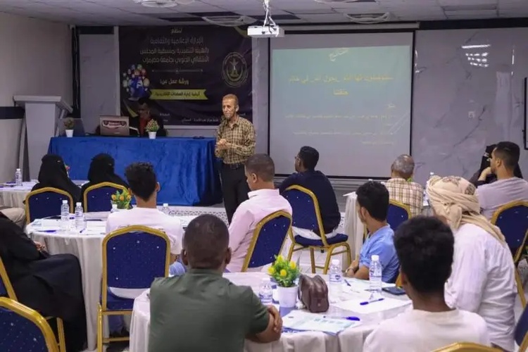 نظمت الإدارة الإعلامية والثقافية بالهيئة التنفيذية لمنسقية المجلس الانتقالي الجنوبي بجامعة حضرموت، اليوم السبت، ورشة عمل تستمرّ ليومين عن كيفية إدارة الصفحات الإلكترونية، والتي استهدفت 40 متدرباً ما بين إعلاميي الأقسام بالمنسقيات، وكوادر إعلامية من نقابة الصحفيين والإعلاميين الجنوبيين فرع حضرموت، وإعلاميين لوسائل أخرى، وطلاب.