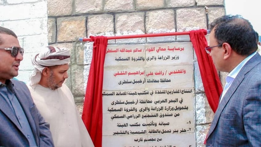افتتح وزير الزراعة والري والثروة السمكية سالم السقطري، اليوم، ومعه محافظ أرخبيل سقطرى رأفت الثقلي، المشاريع المنفذة في مكتب هيئة المصائد السمكية -البحر العربي- بمحافظة سقطرى.