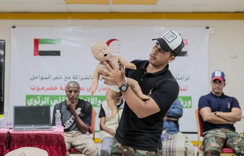 نظمت هيئة الهلال الأحمر الإماراتي بالشراكة مع قوات خفر السواحل بحضرموت وبتنسيق مع مؤسسة متطوعون ، اليوم بالمكلا، ورشة تدريبية في إسعاف الغريق والإنعاش القلبي الرئوي لعدد من المتطوعين وذلك بالتزامن مع قرب حلول موسم نجم البلدة السياحي.