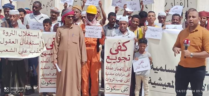عبر خطوة تصعيدية تُعبّر عن رفض شعبي متنامٍ لتردي الخدمات، نظّمت حركة "كفى" صباح اليوم الأحد 14 يوليو 2024 وقفة احتجاجية حاشدة أمام ديوان السلطة المحلية بمديرية تريم، وذلك للمطالبة بحقوق المواطنين المسلوبة وتحسين الخدمات العامة.