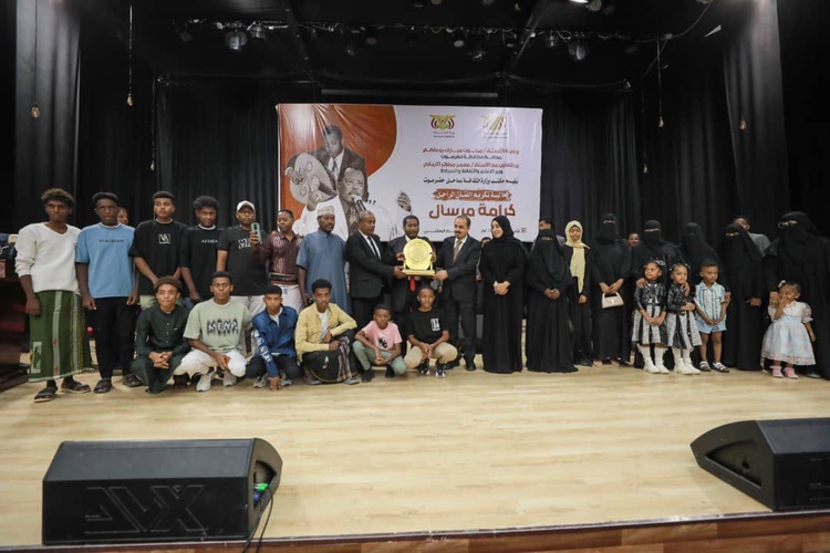 كرم وزير الإعلام والثقافة والسياحة معمر الإرياني اليوم بمدينة المكلا أسرة فنان اليمن الكبير الراحل كرامة مرسال، بدرع الوفاء، تقديراً لدوره الريادي الفني والوطني.