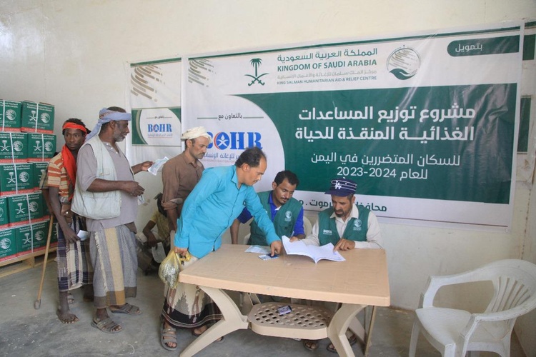 واصل مركز الملك سلمان للإغاثة والأعمال الإنسانية توزيع السلال الغذائية للفئات الأشد ضعفا في المديريات المستهدفة بمحافظة حضرموت منها مديرية العبر ومديرية حجر ومديرية ثمود ومديرية رماه، يستفيد منها 25676 فردا، ضمن مشروع المساعدات الغذائية المنقذة للحياة للسكان المتضررين في اليمن للعام 2023م 2024م والمنفذ على ستة مراحل.