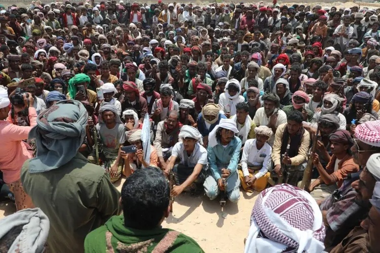 رئيس حلف قبائل حضرموت يتفقد المرابطين في أحد مواقع الحلف