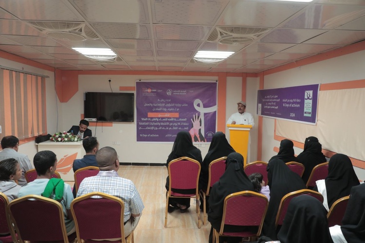 دشنت بمدينة المكلا حملة الـ 16 يومياً من النشاط لمناهضة العنف ضد المرأة بحفل فني وخطابي بحضور ممثل السلطة المحلية بمديرية المكلا المهندس عبدالله بن على الحاج رئيس اللجان المجتمعية، بحضور الأمين العام لجمعية الوصول الإنساني للشراكة والتنمية ، المساحة الآمنة للنساء والفتيات.
