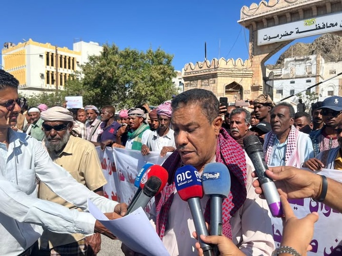 وجاء في البيان: "انطلاقًا من شعورنا بالمسؤولية تجاه أبناء حضرموت ومعاناتهم المستمرة، قررنا، نحن القوى المدنية والحقوقية الجنوبية بحضرموت، المتمثلة في النقابات الأكاديمية والمهنية، والهيئات العسكرية، ومجلس تنسيق المتقاعدين والمبعدين قسرًا من المدنيين والعسكريين، إقامة وقفة احتجاجية كبرى في مدينة المكلا".