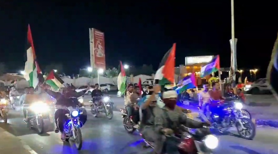 وعمّت الفرحة أرجاء المدينة، حيث جابت المسيرات الحاشدة الشوارع الرئيسية وسط ترديد الهتافات الداعمة لفلسطين، كما رفعت الأعلام الفلسطينية خلال المسيرة، وذلك ابتهاجاً بإعلان اتفاق وقف إطلاق النار بين الفصائل الفلسطينية والكيان المحتل.