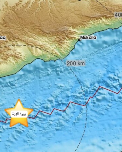 هزة زلزالية بقوة 4.5 درجة وتبعد عن مدينة المكلا هذه المسافة