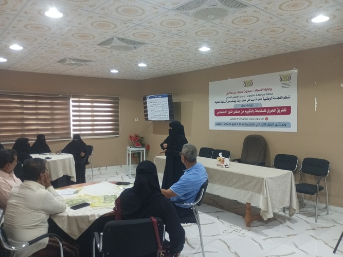 وعلى صعيد آخر نظمت اللجنة الوطنية للمرأة بحضرموت ورشة عمل للفريق المحوري للمتابعة والتقييم والخطة الاربعاء 30 أبريل 2025م نفذتها المدربة الأستاذة اعتماد محمد بن شحنة مسئولة المتابعة بالفريق المحوري بمشاركة مندوبي كافة القطاعات الحكومية المشاركة في هذا المشروع بدعم من السلطة المحلية بالمحافظة ، استعرضت فيها اهمية النزول الميداني للقطاعات والمفاهيم الواردة بالاستمارات لكل مجموعة ، وكذا اتاحة الفرصة للفريق لمناقشة المقترحات شاكرة اللجنة الوطنية للمرأة لتنظيم هذه الورشة .