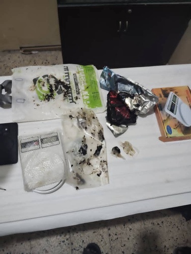 مؤكداً أنه تمت مداهمة المتهمان والقبض عليهم متلبسان والعثور بحوزتهم على أكثر من نصف كيلو جرام من مادة الحشيش المخدر وميزان الكتروني وأدوات تقطيع الحشيش.