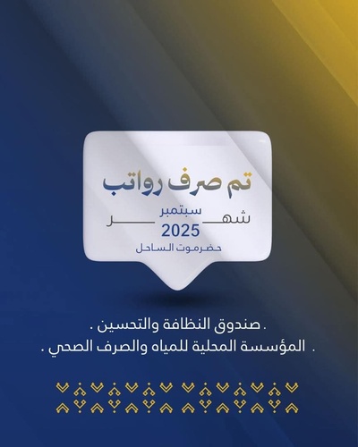 بدء صرف مرتبات صندوق النظافة والتحسين والمؤسسة المحلية للمياه بساحل حضرموت – سبتمبر 2025
