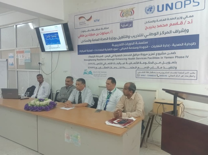 دشّن الدكتور أحمد سالم باصريح وكيل محافظة حضرموت للشؤون المالية والإدارية، بمعية الدكتور حسين زين الحداد رئيس هيئة مستشفى أبن سيناء بالمكلا، البرنامج التدريبي للعاملين الصحيين بالهيئة، والممول من الحكومة الألمانية عبر البنك الأنمائي للتنمية، والمنفذ من قبل مكتب الأمم المتحدة لخدمات المشاريع، ضمن مشروع تعزيز مرونة مرافق الخدمات الصحية باليمن – المرحلة الرابعة، وبإشراف المركز الوطني للتدريب والتأهيل بوزارة الصحة العامة والسكان، وبرعاية معالي وزير الصحة العامة والسكان الدكتور قاسم محمد بحيبح، ومحافظ حضرموت الأستاذ مبخوت مبارك بن ماضي.