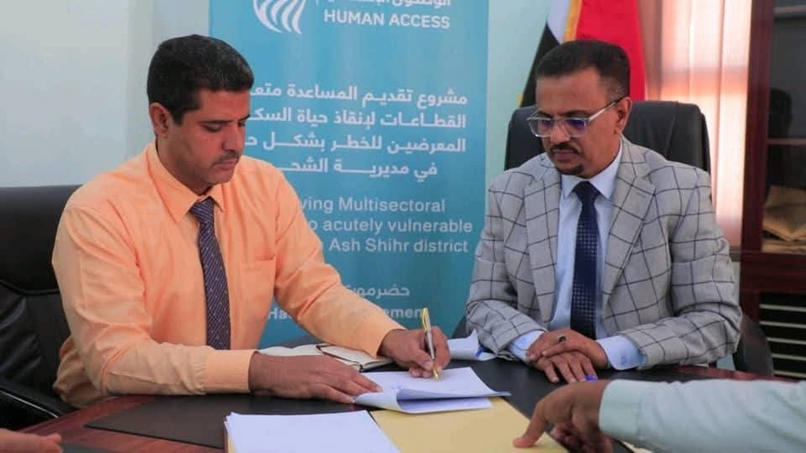 رعى الأمين العام لمحلي محافظة حضرموت الأستاذ/ صالح عبود العمقي، اليوم بالمكلا، توقيع عقد مشروع تقديم المساعدة متعددة القطاعات للسكان الأشد احتياجًا في مديرية الشحر، بتمويل من صندوق التمويل الإنساني في اليمن (YHF)، وتنفيذ جمعية الوصول الإنساني للشراكة والتنمية – فرع المكلا.
