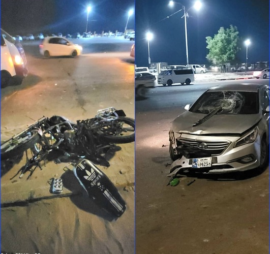 ووفقًا لشهود عيان، فإن الحادث وقع نتيجة السرعة وعدم الانتباه أثناء عبور التقاطع، ما أدى إلى انقلاب الدراجة النارية وتطاير أجزائها في المكان، فيما لحقت بالسيارة أضرار جسيمة في مقدمتها الزجاجية والهيكل الأمامي.