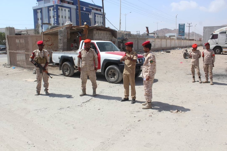 التوجيه المعنوي بالشرطة العسكرية ينفذ نزولًا ميدانيًا لعددٍ من مواقعهم العسكرية الخاصة بحماية المنشآت الحكومية بالمكلا