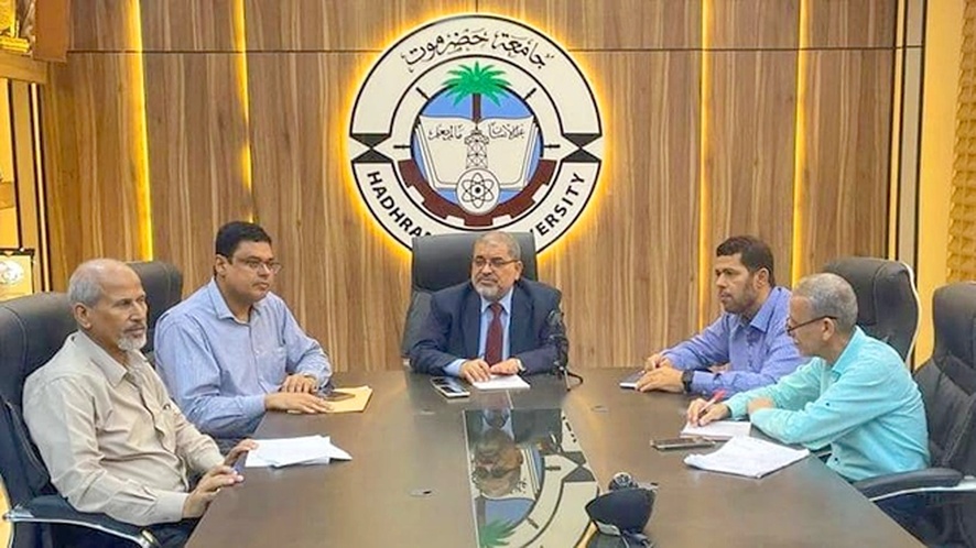 ترأس رئيس جامعة حضرموت محمد سعيد خنبش، اليوم، أعمال اللجان العلمية المنظمة لسلسلة الندوات المتخصصة ضمن (أسبوع البحث العلمي الدولي الرابع).