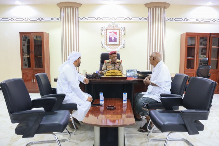 اللواء بارجاش يستقبل المؤرخ والباحث العسكري اللواء ناصر المنهالي بالمكلا