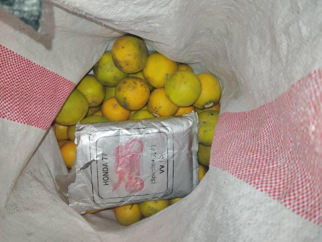 ألقى منتسبو إدارة مكافحة المخدرات بساحل حضرموت القبض على مروّجين ثلاثة لمادة الحشيش المخدر، بعد ضبط كيلو جرام من الحشيش كانا يخفيانه داخل شوال برتقال، في محاولة لتمويه الأجهزة الأمنية.