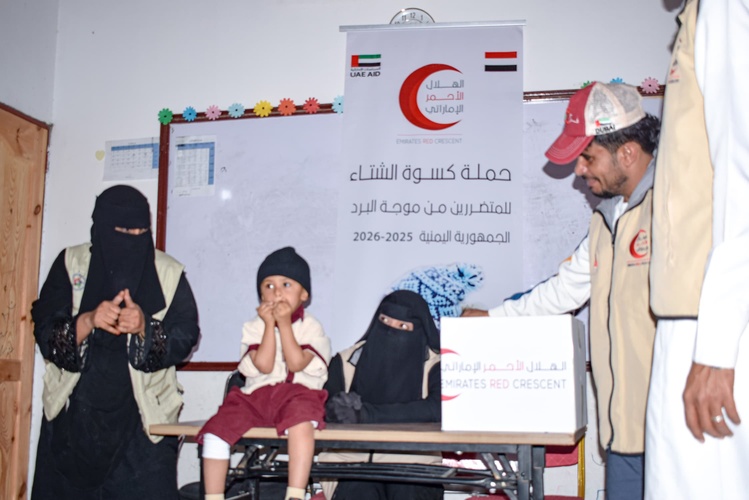 دشّنت هيئة الهلال الأحمر الإماراتي، اليوم، حملة كسوة الشتاء في عدد من مناطق مرتفعات محافظة حضرموت، ضمن جهودها الإنسانية الهادفة إلى دعم الطلاب والطالبات المتأثرين بموجة البرد القارسة التي تضرب العديد من مديريات المحافظة، وتوفير احتياجاتهم الأساسية لمواجهة الظروف الجوية القاسية.