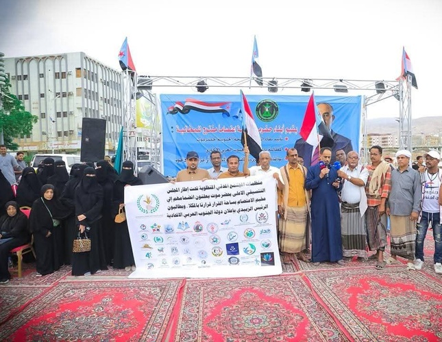 وأكدت المنظمات، في بيان رسمي لها، وقوفها الكامل إلى جانب مطالب شعب الجنوب الرامية إلى إعلان دولة الجنوب العربي، وتأييدها لتواجد القوات المسلحة الجنوبية لتأمين المحافظة من التنظيمات الإرهابية، معربة عن دعمها المطلق للاعتصام المفتوح واستمراره حتى تحقيق الهدف الأول المتمثل في استعادة دولة الجنوب العربي كاملة السيادة.