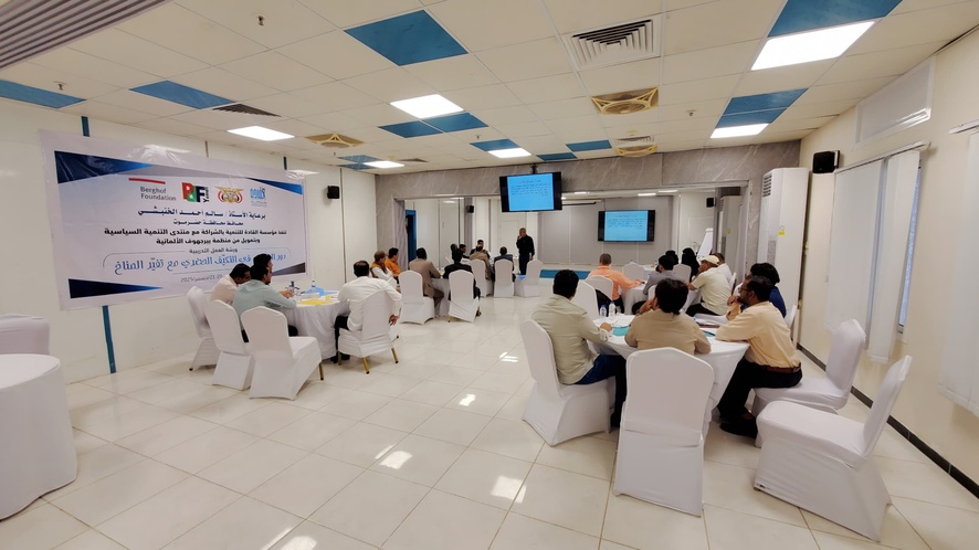 وهدفت الورشة إلى رفع مستوى وعي كوادر البلديات بمخاطر التغير المناخي وتأثيراته على المدن، وإكسابهم أدوات عملية لتقييم المخاطر الحضرية، ودعم جهود إعداد خطط عمل محلية للتكيف المناخي، إلى جانب تعزيز التنسيق المؤسسي بين الجهات ذات العلاقة، ومناقشة أبرز التحديات المتعلقة بقضايا التغير المناخي في المدن اليمنية والحلول العملية والحلول القائمة على الطبيعة.