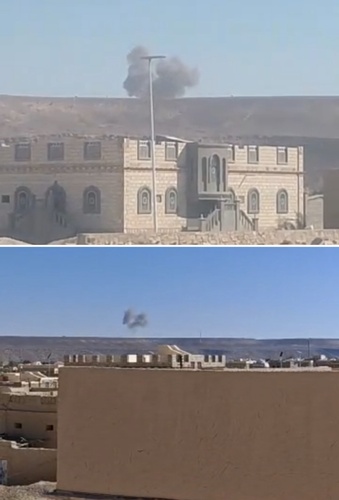 وأفاد سكان محليون وشهود عيان، أن تحليقاً مكثفاً للطيران الحربي والمسير شوهد في سماء المنطقة منذ مساء أمس، قبل أن يشن الطيران غاراته المباشرة صباح اليوم على موقع المعسكر.
