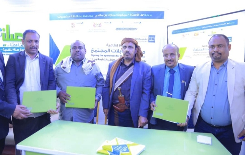 ورعى محافظ حضرموت بمقر مؤسسة صلة للتنمية بمدينة القويرة بدوعن، مراسم التوقيع على اتفاقية مشروع تدريب 30 من قابلات المجتمع بمديريتي الضليعة ويبعث، بتكويل من مؤسسة صلة واشراف مكتب الصحة العامة والسكان بساحل حضرموت وتنفيذ معهد العلوم الصحية بالمكلا، مستمعًا من مدير المؤسسة فرع دوعم أحمد بلفخر الى نشاط المؤسسة في دعم تعليم الفتاة وخدمة قطاع الزراعةودعم المزارعين والاهتمام بتطوير انتاج العسل الدوعني.