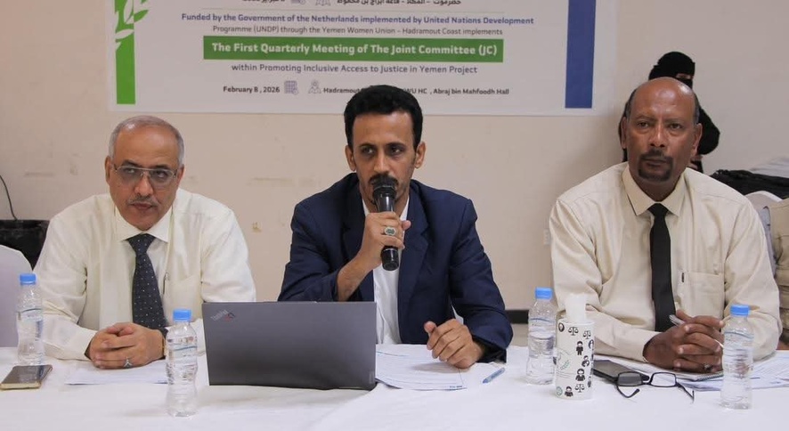 ترأس وكيل محافظة حضرموت رئيس اللجنة المشتركة لمشروع تعزيز الوصول الشامل إلى العدالة الأستاذ حسن سالم الجيلاني، صباح اليوم بمدينة المكلا، الاجتماع الربعي الأول لمشروع تعزيز الوصول الشامل إلى العدالة، الذي تموله الحكومة الهولندية وينفذه برنامج الأمم المتحدة الإنمائي مكتب اليمن UNDP، عبر إتحاد نساء اليمن ساحل حضرموت.