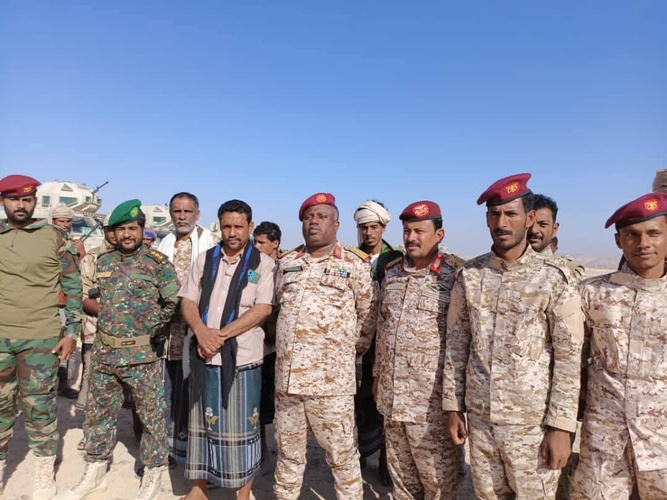 تفقد رئيس عمليات القيادة العامة لقوات حماية حضرموت، العميد الركن لطفي مهدي يادين، اليوم، جاهزية قوة الدعم اللوجستي بمعسكرها في منطقة نحب بمديرية غيل بن يمين، وذلك في زيارة ميدانية رافقه خلالها قائد اللواء الأول العميد الركن الجويد سالمين بارشيد، للاطلاع على مستوى الجاهزية القتالية والانضباط العسكري للقوة.
