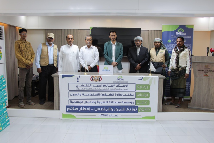 دشن وكيل محافظة حضرموت الأستاذ حسن سالم الجيلاني، صباح اليوم، مشروع توزيع التمور والملابس ووجبات إفطار الصائم، الذي تنفذه مؤسسة سلطانة للتنمية والأعمال الإنسانية، في إطار الجهود الإنسانية الرامية إلى التخفيف من معاناة المواطنين مع حلول شهر رمضان المبارك.