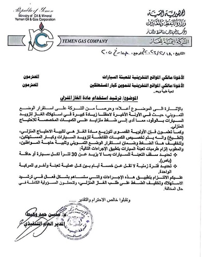 أعلنت الشركة اليمنية للغاز اعتماد آلية تنظيمية جديدة لترشيد استخدام مادة الغاز المنزلي وضبط عملية التوزيع، بهدف الحد من الازدحام وضمان استقرار التموين في السوق.