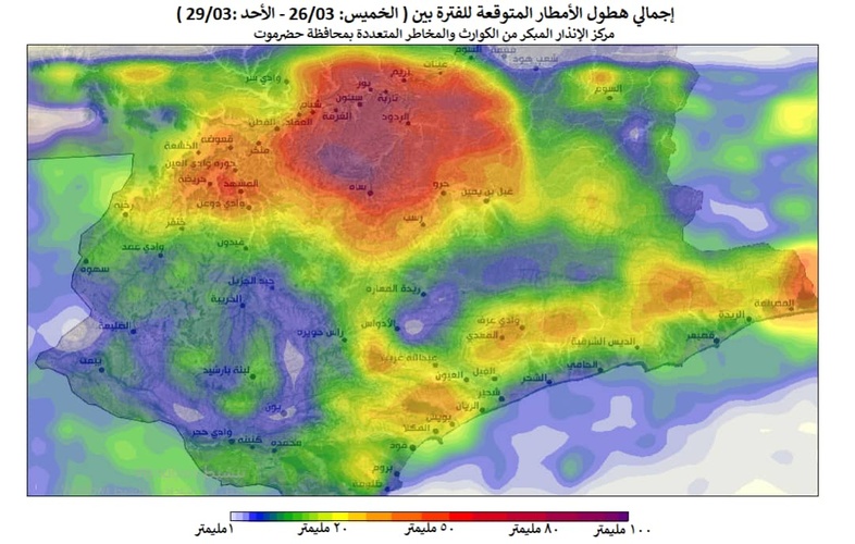 الإنذار المبكر بحضرموت يصدر تنبيهًا جويًا جديدًا ويحذر من أمطار رعدية وسيول خلال 72 ساعة