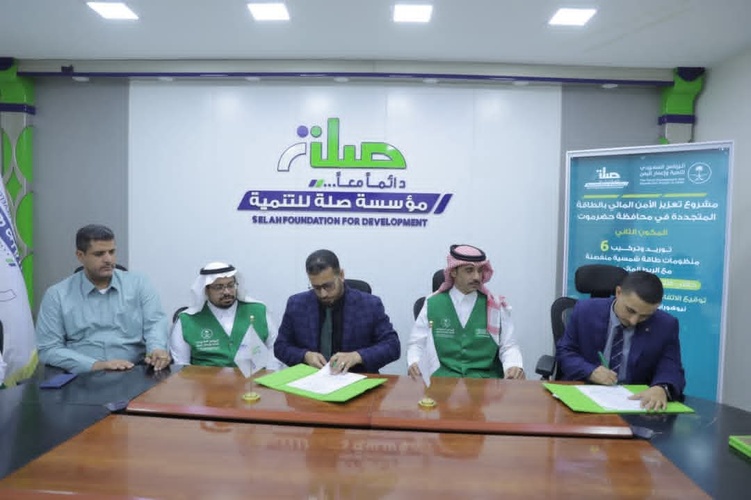 شهدت مدينة المكلا، اليوم الأحد، مراسم توقيع اتفاقيات توريد وتركيب ست منظومات طاقة شمسية مع أنظمة الربط المائي في حقلي فلك وثلة باعمر بمديرية المكلا، وذلك ضمن أعمال المكوّن الثاني من مشروع “تعزيز الأمن المائي بالطاقة المتجددة في محافظة حضرموت”، المموّل من البرنامج السعودي لتنمية وإعمار اليمن ومؤسسة صلة للتنمية.