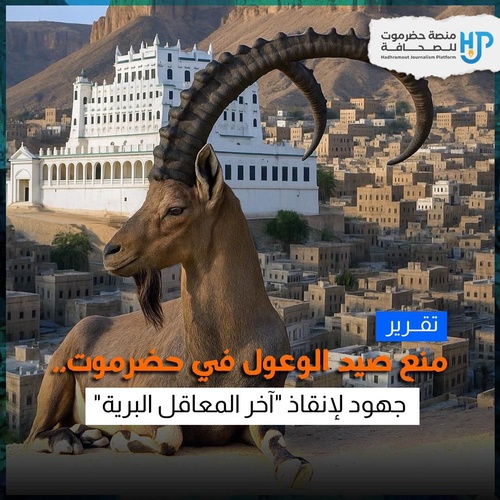 لحماية ما تبقى من الثروة البرية المهددة بالانقراض، مكتب الهيئة العامة لحماية البيئة بمديرية تريم والمديريات الشرقية أصدر قبل أيام قراراً بمنع صيد الوعول لمدة عامين في ست مديريات شرقية بمحافظة حضرموت، وجاء القرار، الذي يشمل مديريات (تريم، السوم، ثمود، رماه، ساه، قف العوامر)، بعد تراجع حاد في أعداد الوعول العربية، التي تُعد أحد الرموز البيئية الأصيلة للمنطقة، حيث حظي القرار بدعم رسمي من مركز خبراء الأرض لحماية البيئة بحضرموت، الذي وصفه بـ "التحول المهم في مسار حماية البيئة الطبيعية".